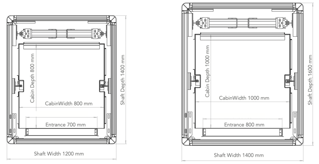 - The MINI & MINI + features a gearless heavy-duty home lift, designed for long-term performance, serving up to 4 floors.